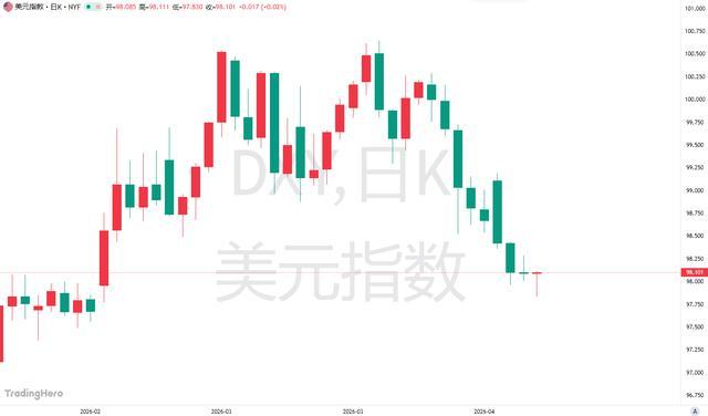 美元指数周四亚盘一度下跌了0.2%,几乎已经逼近2月27日(即战争爆发前一天)的水平,截止发稿前,美指已经收复日内失地,若今日仍收跌,这将是其连续第九个交易日下跌,并创自2006年以来最长的连跌纪录。